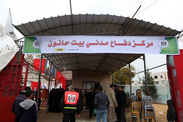 واستغرق إنشاء وترميم مركز إطفاء بيت حانون قرابة الأربعة شهور باستخدام كافة الإمكانيات المتوفرة، وصبغ المبنى حديث الافتتاح والمكون من طابق أرضي باللون الأحمر تجسيداً لتضحيات أفراد الدفاع المدني خلال حرب الفرقان.