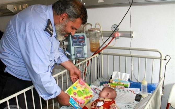 زار وفد من العلاقات العامة والإعلام بوزارة الداخلية والأمن الوطني بالتعاون مع العلاقات العامة للشرطة الفلسطينية مستشفى غزة الأوربي ومستشفى ناصر الطبي جنوب قطاع غزة .