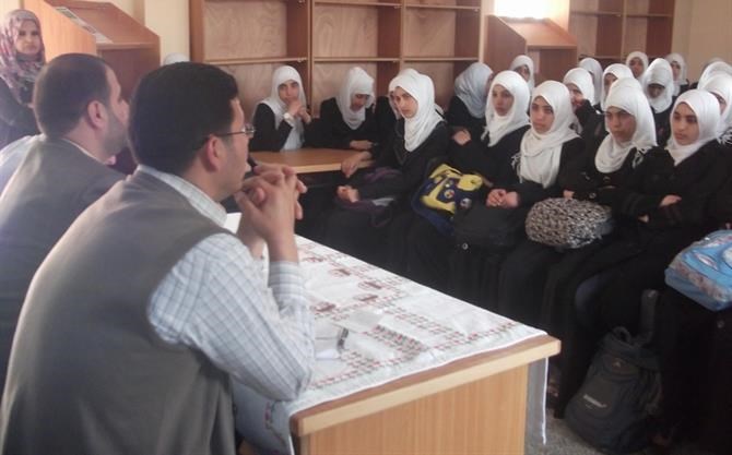 وتحدث الملازم محمد أبو عنزة عن خطر التخابر مع الاحتلال وعن بعض أساليب الإسقاط وحضر اللقاء إلي جانب الطالبات مديرة المدرسة والهيئة التدريسية بكامل طاقمها.