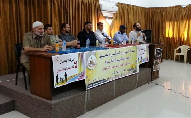 الوسطى / الداخلية / إعلام التوجيه السياسي: نظمت هيئة التوجيه السياسي والمعنوي في المحافظة الوسطى ملتقى بعنوان "الملتقى الوطني لمكافحة الترامال " للأجهزة الأمنية والمخاتير والعشائر في المحافظة الوسطى في قاعة بلدية النصيرات . وبدأ اللقاء بتلاوة عطرة للقرآن الكريم, ثم مقدمة للأخ النقيب محمد الأسطل تلا ذلك كلمة للدكتور العقيد محمد الجريسي مدير إدارة المحافظات بالهيئة حيث تحدث عن مخاطر الأترامال وأثر هذه الظاهرة على أبناء الشعب الفلسطيني. وتطرق الجريسي وهو عضو رئاسة الحملة الوطنية لمكافحة الأترامال للآثار النفسية والجسمية والاجتماعية للأترامال. ثم تلا ذلك كلمة للأخ المقدم أحمد القدرة مدير عام مكافحة المخدرات حيث تحدث عن المشاكل التي تواجه الحكومة في مكافحة الأترامال. وأكد ان هناك جهد عظيم مبذول في سبيل مواجهة هذه الظاهرة الخطيرة على المجتمع, مدعما بعرض LCD وضح فيه أماكن صنع هذه المواد السامة. ثم انتهى اللقاء بفتح مجال الأسئلة للإخوة الحضور والتي أجاب عنها المسؤولون المشاركون في الملتقى.
