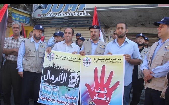 غزة / الداخلية / محمد الكحلوت: نظمت لجنة الأسرى للقوى الوطنية والإسلامية وقفة تضامنية مع الحملة الوطنية لمكافحة الأترمال المدمر التي تنظمها وزارة الداخلية والأمن الوطني في غزة على مفترق السرايا صباح الثلاثاء. ورفع المشاركون في الوقفة شعارات تنادي بمشاركة كافة فئات الشعب الفلسطيني في مكافحة الأترمال المدمر لما يشكله من خطر أمني وصحي واقتصادي واجتماعي ، مؤكدين دعمهم لجهود وزارة الداخلية في حملة مكافحة الأترمال المدمر. وفي كلمة لجنة الأسرى للقوى الوطنية والإسلامية أكد طلال زقوت عضو المكتب السياسي للجبهة العربية الفلسطينية على وقوف اللجنة خلف كل الجهود الساعية لمكافحة آفة الأترمال الخطيرة. وقال زقوت بأن الشباب الفلسطيني هم عنوان مستقبل فلسطين وركن أساسي من أركانها ومن الواجب علينا أن نراجع كافة الظروف التي تؤدي إلى انتشار آفة الأترمال بينهم. ونوه بأن انتشار الأترمال وغيره من المخدرات هو من الأهداف الأساسية للاحتلال الصهيوني ليضرب به الشعب الفلسطيني مؤكداً أن مواجهة هذه الظاهرة هو واجب ديني ووطني داعياً إلى تجفيف منابع إدخال هذه العقاقير السامة. وحمَّل زقوت في كلمته الانقسام الذي يعاني منه شعبنا الفلسطيني والخلافات بين أركانه المسؤولية الكاملة عن انتشار هذه الظاهرة السيئة. وذكر القائد الفتحاوي تيسير البرديني مفوض الأسرى في لجنة الأسرى للقوى الوطنية والاسلامية أن الاحتلال يسعى إلى تدمير كل المقدرات السياسية والاقتصادية والاجتماعية للشعب الفلسطيني من خلال نشر ودس هذه الآفة بين الشباب الفلسطيني. ولفت إلى أن الأترمال لا يقود إلى راحة نفسية كما يظن البعض بل يقود إلى أمراض صحية ونفسية واجتماعية مؤكداً على حاجة الشعب الفلسطيني في هذه الفترة للشباب القوي الخالي من الأمراض لأن الشعب الفلسطيني في هذه الفترة متوجه صوب معركة التحرير.