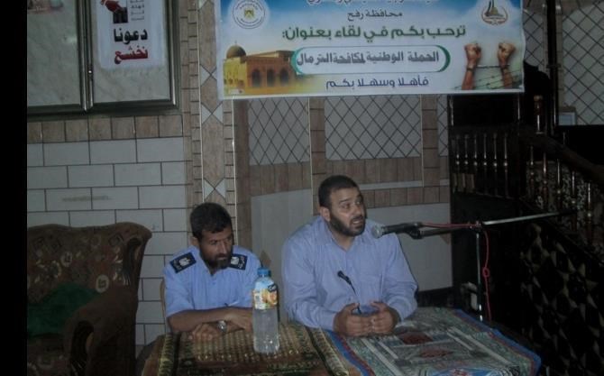 رفح / الداخلية / إعلام التوجيه السياسي ضمن إطار الحملة الوطنية لمكافحة الأترامال نظمت هيئة التوجيه السياسي والمعنوي برفح محاضرة عن الأترمال المدمر لرواد مسجد النور بالمحافظة. وتحدث النقيب احمد رصرص بحضور الرائد احمد البليشي عن مخاطر الأترامال على الإنسان والحكم الشرعي لتناوله وآثاره المدمرة علي صحة الإنسان وماله وانعكاساته علي العائلة والمجتمع، داعيا أولياء الأمور والشباب الى محاربة هذه الظاهرة والحد من انتشارها بين الجيل الشباب.