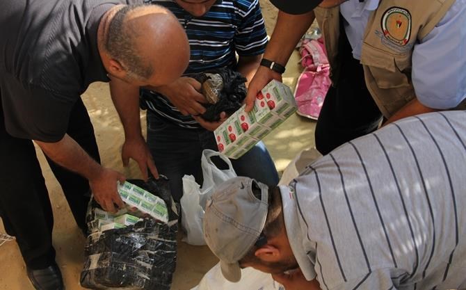 غزه / الداخلية / أحمد عطا لله ضبطت شرطة مكافحة المخدرات مساء أمس الأحد كمية كبيرة من الحشيش والأترمال المدمر في أحد أحياء مدينة غزة بعد متابعة حثيثة للوكر الذي خبأ فيه المجرمون تلك المواد. وقال النقيب سعد الشيخ خليل مدير العلاقات العامة والإعلام في الإدارة العامة لشرطة مكافحة المخدرات : "بعد متابعة لبعض المجرمين وكبار تجار المخدرات تمكنت شرطة المكافحة فرع _غزة من إلقاء القبض على بعض مروجى المخدرات وبحوزتهم عشرة فروش حشيش وعشرة آلاف حبة أترمال مدمر ". وأكد أن هذه العملية تأتى في إطار الحملة التي تقوم بها وزارة الداخلية لمحاربة الأترمال. من جانبه قال الرائد سمير العرينى مدير مكافحة غزة : " الإدارة العامة لمكافحة المخدرات تعمل ليل نهار على توعية الجمهور من مخاطر هذه الآفة المدمرة ". وشدد على أن كل من تسول له نفسه العبث بأمن مجتمعنا الفلسطيني سيتم ملاحقته وضربه بيد من حديد. وأضاف بأن شرطة المكافحة استطاعت في الآونة الأخيرة تجفيف المنابع والمصادر التي يحصل من خلالها المروجون على المواد المخدرة.