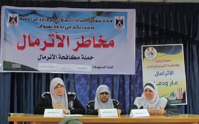 غزة / الداخلية / إعلام الشرطة: نظمت الشرطة النسائية محاضرة أمنية للعاملات في وزارة المرأة وذلك ضمن فعاليات الحملة الوطنية لمكافحة الأترمال. وألقت المحاضرة المقدم ناريمين عدوان مدير الشرطة النسائية ، والنقيب فايزة عبد الدايم مسئول دائرة التوجيه والإرشاد في الشرطة النسائية. وبيًّنت المقدم عدوان في بداية حديثها الفرق بين العقار الطبي الذي يصفه الطبيب للمريض والعقار المخدِّر الذي يتم ترويجه بين شبابنا. وأكَّدت أن العقار المخدر رُوِّج بعدة ثقافات خاطئة هدفها النيل من شبابنا منها أن هذا السم غير مخدر وأنه منشط وأنه يساعد على المذاكرة ، ويقوِّي الحياة الجنسية، منوهةً على ضرورة العمل على دحض هذه الادعاءات بنشر الوعي والثقافة بين شبابنا. وذكرت عدوان أهم المخاطر الصحية والأعراض الجانبية الملازمة لمدمنيه ، وأكدت أن هناك عقوبات رادعة لمروجي وتجار الأترمال منها إعدام عدد من التجار. وفي نهاية حديثها عرضت بعض القضايا التي وصلت إليهم في مراكز الشرطة جراء إدمان هذه السموم.