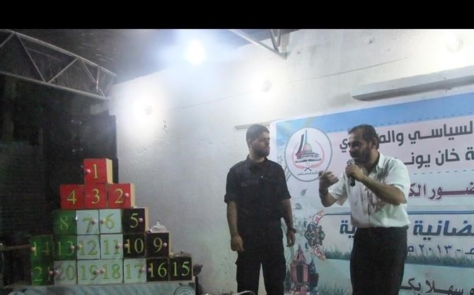 خان يونس/الداخلية/إعلام التوجيه السياسي: نظمت هيئة التوجيه السياسي والمعنوي التابعة لوزارة الداخلية والأمن الوطني بمحافظة خان يونس أمسية ثقافية رمضانية مركزية لـ"250" ضباط من الأجهزة الأمنية بالمحافظة. وحضر الأمسية التي عقدت في ساحة مكتب الهيئة بالمحافظة، لفيفاً من الشخصيات، كان أبرزها النائب في المجلس التشريعي د. يونس الأسطل، ووكيل وزارة الداخلية والأمن الوطني أ. كامل ماضي، واللواء صلاح الدين أبو شرخ مدير عام قوى الأمن الداخلي، ويحيى الأسطل رئيس بلدية خان يونس، ولفيف من قيادات الأجهزة بالمحافظة. وتحدث النائب الأسطل عن فضل العشر الأواخر من رمضان. بدوره لفت ماضي عن عمل التوجيه السياسي في السابق والتوجيه السياسي الحالي والمفارقة العجيبة بينهما. كما وشملت الأمسية على مسابقة ثقافية، وأناشيد، وفقرات شيقة حيث أدار المسابقة الفنان الشهير راجي النعيزي، وفاز العديد من الإخوة بجوائز نقدية وعينية، وأجهزة كهربائية، وكانت الجائزة الكبرى عبارة عن تلفزيون ملون(21بوصة)، والعديد من جوائز الترضية. واختتمت الأمسية في جو مليء بالفرح والسرور، مطالبين المشاركين بالأمسية الهيئة القيام بمثلها.