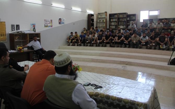 غزة / الداخلية / شكري ضاهر: افتتحت مديرية الإصلاح والتأهيل اليوم الأحد دورة أحكام مبتدئة لنزلائها في مركز الإصلاح والتأهيل المركزي "الكتيبة". وتسعى المديرية العامة للإصلاح والتأهيل بوزارة الداخلية والأمن الوطني لدمج النزلاء في مختلف البرامج والفعاليات التربوية والدينية والثقافية والأنشطة الرياضية التي تنظمها. ولم تقف مديرية الإصلاح والتأهيل عند حدٍّ معين من مشاريع العطاء لنزلائها فالبرامج جاءت لترتقي بالنزيل ليكون عنصراً فعالاً في المجتمع بعد قضائه المدة القانونية لمحكوميته. ولجأت المديرية لتطوير سلوك النزلاء عبر تنظيم دورة أحكام تأهيلية لهم بإشراف من دائرة العلاقات العامة بالمديرية من باب قول النبي صلى الله عليه وسلم "خيركم من تعلم القرآن وعلمه". وبدوره أكَّد المساعد مسعود أبو راس أستاذ دورة الأحكام التأهيلية لنزلاء مراكز الإصلاح والتأهيل أن دورة الأحكام تأتي من باب الارتقاء بالنزلاء في تعلم الأحكام لقراءة القرآن الكريم بأحكامه وضوابطه. وأوضح أن النزلاء لديهم القابلية في التعلم وذلك حرصاً منهم على استغلال وقت الفراغ. من جانبه أكَّد المقدم عمر عوض مدير العلاقات العامة بالمديرية أن دائرة العلاقات العامة تسعى إلى الارتقاء بالنزلاء من خلال الأنشطة التي تُقدم للنزلاء لأنهم أمانة ويجب المحافظة عليها. في حين أكد النزيل (ي . أ) أحد المشاركين في الدورة أنه انتسب لها فور الإعلان عنها ، مستطرداً : "كنت أول المسجلين بها لقناعتي الكاملة بضرورة تعلم أحكام القرآن والاستفادة منها أثناء تمضية فترة المحكومية، وأملي أن يغفر الله لي وأن أكون من عباده الصالحين".