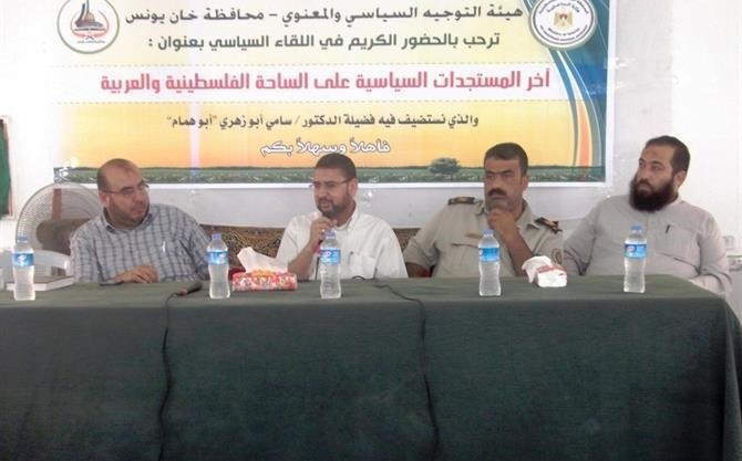 Association of Political and Moral Guidance has organized a political meeting about the latest political developments in the Palestinian and Arab region . The association hosted in this meeting, which was held in the hall of Khalil Al Rahman mosque in Khanyounis and attended by 150 officers and managers, Hamas spokesman Dr. Sami Abu Zohri. Abu Zohri spoke about two important pillars which are the current Egyptian situation and what is happening there and the internal Palestinian situation. He also talked about the absurd negotiations led by Abbas, and the leaked documents from the Fatah movement which holds the incitement against Gaza and resistance movement Hamas. Eventually ,there was some discussion questions and interventions by the officers and members of the security service .