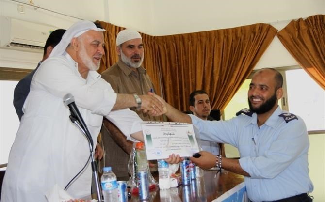 غزة / الداخلية : نفذت هيئة التوجيه السياسي والمعنوي التابعة لوزارة الداخلية والأمن الوطني أكثر من 1990 فعالية ونشاطاً خلال شهر آب (أغسطس) الجاري. وشملت الأنشطة والفعاليات تنظيم كتائب إيمانية وجولات ميدانية ودروس ومواعظ ومحاضرات لرجال الأمن والطلبة والنزلاء ودورات متنوعة بالإضافة لعشرات الأنشطة الأخرى. جولة ميدانية وذكرت هيئة التوجيه السياسي في تقريرها الشهري أن مكاتبها المنتشرة بمحافظات قطاع غزة الخمس نفذت 6 كتائب إيمانية و182 جولة ميدانية. وأشارت إلى تنظيمها 818 درساً وموعظة توزعت على المصليات وطوابير الأركان في مقار الأجهزة الأمنية والشرطية والنزلاء في مراكز الإصلاح والتأهيل. وبينت الهيئة أن شهر أغسطس شهد تنظيم 737 محاضرة متنوعة لرجال الأمن وطلبة المدارس في مختلف محافظات القطاع. ولفت تقرير الهيئة إلى تنفيذ 73 دورة متنوعة منذ مطلع الشهر الحالي، إلى جانب تنظيم 174 نشاطاً آخراً . وأظهر رسم تخطيطي يُوضح توزيع الأنشطة حسب النوع في التقرير الشهري للهيئة ارتفاعاً ملحوظاً في نسبة المحاضرات لرجال الأمن وطلبة المدارس تلاها إلقاء مواعظ على النزلاء. وعرضت التوجيه السياسي في تقريرها عن شهر أغسطس إحصائية الأنشطة حسب الإدارات والمحافظات التابعة لها. وأوضحت أن مكتبها المركزي نفَّذ 194 نشاطاً فيما نفذ مكتب محافظة غزة 425 نشاطاً، بينما نظمت الهيئة بمكتب محافظة الشمال 482 نشاطاً مختلفاً. أهم الأنشطة في حين نفذت هيئة التوجيه السياسي بمكتب المحافظة الوسطى 283 فعالية، وحلت محافظة خانيونس في المرتبة الأولى من حيث عدد الأنشطة بـ 522 فعاليةً، أما مكتب محافظة رفح فنفذ 110 نشاطاً. واستعرض التقرير الشهري للهيئة أبرز الأنشطة التي نفذت وشملت عقد محاضرة تربوية عن الوضع السياسي لـ 60 ضابطاً وفرداً من شرطة التدخل وحفظ النظام. كما نظمت الهيئة لقاءً سياسياً لـ150 ضابطاً وجندياً من جنود الأجهزة الأمنية والشرطية استضافت خلاله د. ناجي البطة الباحث في الشأن الصهيوني . إلى ذلك اختتمت هيئة التوجيه السياسي دورة " التطبيق العملي لحقوق الإنسان" لـ 22 ضابطاً وعنصراً من شرطة التدخل وحفظ النظام، بالإضافة لاختتام دورة فن التعامل مع الجمهور لـ 25 عنصراً من الشرطة النسائية بمنطقة خان يونس ورفح جنوب قطاع غزة. افتتاح دورات في سياق منفصل، خرجت الهيئة دورات بمشاركة 70 ضابطاً وعنصراً في شرطة المرور، كما افتتحت دورة في سلاح البحرية الاسرائيلية لـ 25 منتسباً للشرطة البحرية إلى جانب افتتاح دورة شرعية بعنوان (رؤية شرعية لقضايا فكرية معاصرة) بـ20 منتسباً لجهاز الأمن الداخلي. وافتتحت هيئة التوجيه السياسي مخيم النزلاء الثاني الذي حمل شعار (لازم نتغيّر) بمشاركة 40 نزيلاً بمركز الإصلاح والتأهيل المركزي "الكتيبة" بمحافظة غزة. على صعيد مشابه، افتتحت الهيئة بمكتب محافظة الشمال إذاعة محلية داخل مركز الإصلاح والتأهيل الرئيس بالمحافظة، كما اختتمت دورات فقهية عامة لنزلاء مركز الإصلاح والتأهيل الرئيس بمحافظة خانيونس بمشاركة 200 نزيلاً من نظارة البلد.