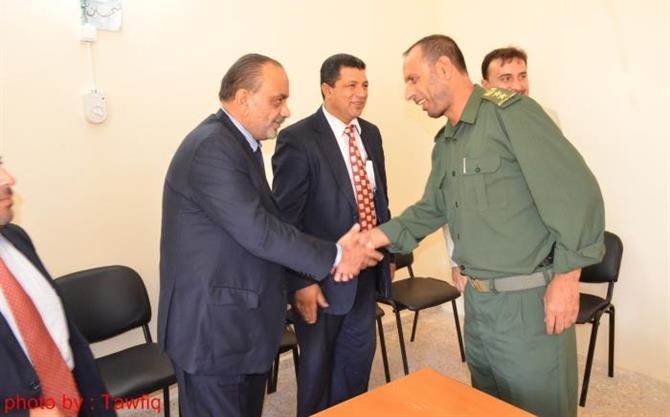 غزة / الداخلية: خصصت هيئة القضاء العسكري قاعة دائمة لنقابة المحامين في مبنى هيئة القضاء العسكري غرب غزة. وافتتح وفد من رئاسة هيئة القضاء العسكري ومجلس نقابة المحامين الفلسطينيين المقر بمشاركة نائب نقيب المحامين أ. سلامة بسيسو ووفد من المحامين والأمين العام المساعد لإتحاد المحامين العرب وأ. زياد النجار أمين السر وأ. علي الدن عضو المجلس ورئيس لجنة التدريب بالإضافة لـ أ. أديب الربعي وأ. علاء الفرا مدير النقابة. تعزيز التنسيق وكان في استقبال مجلس نقابة المحامين كل العقيد ناصر سليمان رئيس هيئة القضاء العسكري والمقدم رامي صالح مدير المكتب الفني وعضو المحكمة العسكرية العليا والمقدم محمد الجزار عضو المجلس العسكري الأعلى بالإضافة لعدد من أعضاء الهيئة والنيابة العسكرية وعددا من الإداريين. وقال بسيسو إن "مجلس نقابة المحامين يسعى دائما لتعزيز التنسيق والتعاون المشترك مع كل أركان العدالة وخاصة القضاء بكل اختصاصاته" . وأكد نائب نقيب المحامين أن افتتاح غرفة للمحامين داخل مبنى القضاء العسكري يأتي في إطار دعم المحامي وتنظيم عمل المحامين داخل المحاكم. تسهيل العمل بدوره، رحب العقيد سليمان بمجلس نقابة المحامين، معرباً عن سعادته بزيارتهم لمقر القضاء العسكري لافتتاح القاعة الخاصة بالمحامين. وأكد رئيس هيئة القضاء العسكري سعيهم الدائم لتسهيل عمل المحامين وذلك إيماناً مناً بالعدالة وترسيخها بين أفراد المجتمع. وقام أعضاء مجلس نقابة المحامين يتقدمهم أ. سلامة بسيسو والعقيد ناصر سليمان بقص الشريط إعلانا لإفتتاح القاعة الخاصة بالمحامين في جو ساده المودة والفرحة بين المشاركين في الافتتاح.