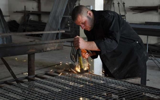 غزة / الداخلية / بهاء خلف: تقوم ورشة الحدادة التابعة للمديرية العامة للإمداد والتجهيز بوزارة الداخلية والأمن الوطني بصناعة وتنفيذ كافة احتياجات ومستلزمات الإدارات والأجهزة الأمنية من الحديد وصناعاته. ويتميز العاملون في ورشة الحدادة التابعة للإمداد والتجهيز بالمهارة والإبداع الفني والسرعة في إنتاج كافة احتياجات الوزارة من أسره حديدية وحمايات نوافد وأسقف وكراسي وطاولات ومعرشات كبيرة وغيرها. وأكد العميد محمود شاهين مدير عام المديرية العامة للإمداد والتجهيز أن نظم إختيار الفنيين الذين يعملون في كافة الورش الفنية تندرج تحت أمهر وأفضل الفنيين. وأشار العميد شاهين إلى أن هؤلاء العاملون في الورش وخاصة ورشة الحدادة على مهارة وقدرة عالية لتنفيذ كافة احتياجات الإدارات والأجهزة الأمنية في وزارة الداخلية بالشكل الجمالي المتميز والإبداع اللامحدود وبالكفاءة العالية في المنتج وبالسرعة الممكنة.