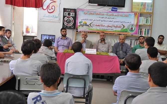 غزة / الداخلية / إعلام التوجيه السياسي : نظمت هيئة التوجيه السياسي والمعنوي في محافظة شمال قطاع غزة بالتعاون مع الكتلة الاسلامية عدة لقاءات سياسية وتوعوية لطلابية الثانوية العامة. واستهدفت هذه اللقاءات التي استضافت فيها الهيئة المحلل السياسي الأستاذ مصطفى الصواف، ونائب رئيس الهيئة المقدم زكي الشريف عشرات الطلبة في مدرستي الشقيري وخليفة بن زايد. وتحدث عن مخاطر اتفاقية اوسلو على الشعب الفلسطيني وعلى القضية الفلسطينية، مؤكدين أن الاتفاقية أدت إلى تدمير القضية، وأعادت الشعب الفلسطيني إلى الوراء. ولفتوا إلى أن حفنه من الشعب الفلسطيني وقعوا الاتفاق وهم لا يمثلون الشعب الفلسطيني، مشيرين إلى أن هناك الكثير الكثير من الملاحظات على الاتفاقية. من جانبهم شكر مدراء المدارس المذكورة التوجيه الساسي والكتلة الإسلامية على الجهود الطيبة التي ترتقي بالطلبة لأفضل المستويات. وقد شكر النقيب يوسف ابو مهادي ممثلا عن التوجيه السياسي الضيوف والمدراء والطلبة على جهودهم والاستجابة للدعوة واهتمامهم بذلك.
