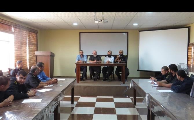 غزة/عمار مرتجى: استقبلت الإدارة العامة للعمليات المركزية التابعة لوزارة الداخلية كلاً من العميد محمود عزام والدكتور الداعية محمود عجور وبعض المدراء من التوجيه السياسي والمعنوي. جاء ذلك خلال زيارة نظمتها هيئة التوجيه السياسي والمعنوي للأجهزة الأمنية . بدوره ألقى الدكتور عجور محاضرة توعوية عن العشر الأوائل من ذي الحجة لضباط وضباط صف وأفراد الإدارة العامة للعمليات المركزية. وقد رحب العقيد محمد خلف في هذه الزيارة التي من شأنها زيادة التوعية عند الشباب في هذه الأيام المباركة. وشكرت هيئة التوجيه السياسي والمعنوي كلاً من العقيد محمد خلف "أبو بلال " والمقدم حسن حمودة "أبو مالك" على حسن الاستقبال والتعاون المشترك والدائم بين الجهازين.