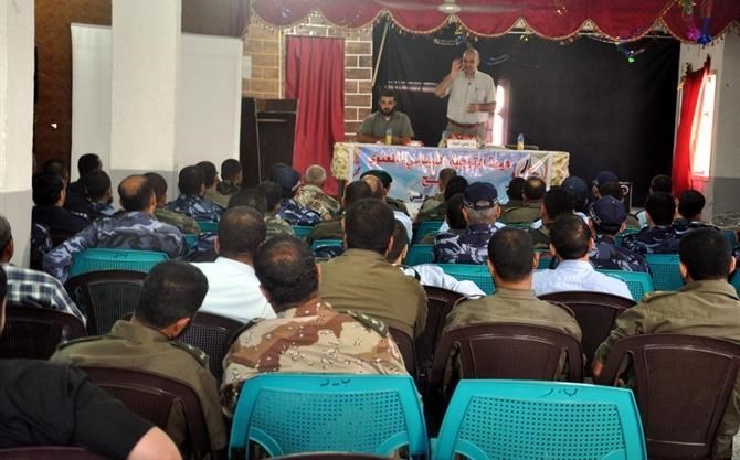 رفح_ وائل أبو محسن: نظمت هيئة التوجيه السياسي والمعنوي بمحافظة رفح لقاء خاصا لعناصر الأجهزة الأمنية في مكتبة البلدية وسط مدينة رفح تحت عنوان "تحليل الواقع واستشراف مستقبل المنطقة" ضمن فعالياتها وأنشطتها المتواصلة من أجل توعية كوادر الأجهزة الأمنية. واستضافت الهيئة الدكتور ناجي البطة الخبير في الشئون الإسرائيلية تحدث خلالها عن التحديات الكبيرة والمؤامرة التي تحاك ضد قطاع غزة من عدة أطراف تريد الإطاحة بالمشروع المقاوم الذي ضرب أقوي معاني الصمود والتحدي في وجه المحتل . وأضاف البطة أن النظرية الأمنية للاحتلال الصهيوني تتهاوي يوما بعد يوم نظرا لقوة بصيرة الأجهزة الأمنية في قطاع غزة وتأثيرها على مجريات الأحداث في المنطقة . وأكد البطة على أن قوي الأمن في قطاع غزة لهم دور كبير في حماية الجبهة الداخلية من أي اختراق داخلي أو خارجي على الرغم من كثرة المؤامرات التي تعصف بالمنطقة .