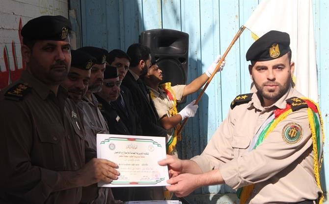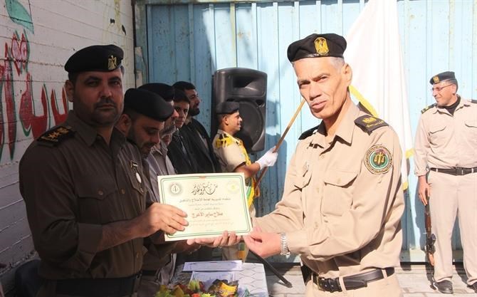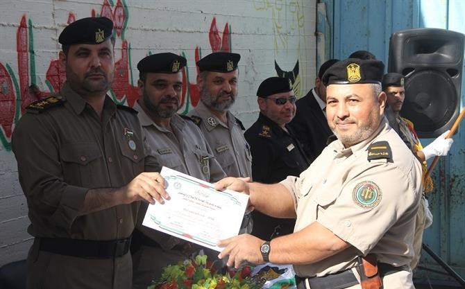غزة / الداخلية / رائد أبو جراد: كرَّمت المديرية العامة لمراكز الإصلاح والتأهيل بوزارة الداخلية والأمن الوطني خلال طابور أركان نظمته صباح الأحد عدداً من ضباط وضباط صف وعناصر المديرية العاملين بمركز الإصلاح والتأهيل المركزي "الكتيبة" غرب مدينة غزة. وحضر مراسم طابور الأركان وحفل التكريم كل من مدير عام المديرية العامة لمراكز الإصلاح والتأهيل عقيد حقوقي عطية منصور ومدير مركز الإصلاح والتأهيل المركزي مقدم حقوقي علاء سرور ومدير العلاقات العامة والإعلام بالمديرية مقدم عمر عوض ومدير التوجيه السياسي بمحافظة غزة أ. نبيل حجاج ولفيف من الضباط. كما شارك في الحفل وطابور الأركان أكثر من مائة ضابط وضابط صف وعنصر من منتسبي الإصلاح والتأهيل العاملين بالمركز الرئيس "الكتيبة" بغزة. الانضباط العسكري وتفقد العقيد منصور طابور أركان ضباط وضباط صف وعناصر مركز الإصلاح والتأهيل المركزي "الكتيبة" لمتابعة التزامهم بالانضباط العسكري. وأكد أن ضباط الأمن جزء من غزة والوضع العام الذي يمر به القطاع في وقت تمَّ تشديد الحصار الصهيوني المفروض عليه. ودعا منتسبي المديرية أن يكونوا جزءاً من السبّاقين في الحفاظ على غزة وحماية الجبهة الداخلية وأول الواقفين أمام الهجمة الكبيرة التي تُشن على القطاع. وشكر منصور مدير مركز الكتيبة على تنظيم الطابور وأشاد بانضباط منتسبي المركز، مؤكداً على أن المديرية لن تتهاون إطلاقاً بالانضباط العسكري. وقال مدير عام الإصلاح والتأهيل : "يجب أن يكون احترام الزمالة من أولويات العمل إضافة للالتزام بالحضور والانصراف والزي وكل مستويات الانضباط المعروفة". وأكد أن التزام منتسبي مراكز الإصلاح والتأهيل بالشكل ينعكس على مضمون الأداء، مستطرداً "الحياة العسكرية لها مضمون والشكل الخارجي لمنتسبينا يدل على المهنية والتميز الأمني". وأضاف العقيد منصور مخاطباً الضباط والعناصر "كل شخص فيكم يجب أن يفتخر أنه يعمل في مجال مقدس يتمثل في حفظ الأمن وحماية الجبهة الداخلية وتوفير الأمن والاستقرار للمجتمع". وثمن أداء ضباط وعناصر مركز "الكتيبة" ، مبيناً أن حفل التكريم الخاص بالمميزين جاء لتقدير جهود من أبدى نشاطاً وجدية في العمل خلال الفترة الماضية. التزام واجتهاد بدوره، أثنى المقدم سرور على انضباط والتزام ضباط وعناصر مركز إصلاح وتأهيل "الكتيبة" بعملهم خلال الفترة السابقة، مشيراً إلى جدهم واجتهادهم ونشاطهم ومثابرتهم ومهنيتهم. ووجه سرور حديثه لمنتسبي المركز بقوله "التحية لكم وأنتم تعملون في الإصلاح والتأهيل وتواصلون مهامكم بكل مهنية وجدية ونشاط وفق توجيهات وتعليمات وسياسة المديرية". وحثَّ منتسبي مركز "الكتيبة" بالحرص الدائم على الأداء المميز في العمل، مضيفاً "نشيد بعملكم ونشاطكم لذلك نكرمكم اليوم تقديراً لجهودكم الطيبة". وكشف المقدم سرور أن المرحلة القادمة ستشهد مزيداً من التخطيط الإداري الناجح والارتقاء بالمستوى المهني والتكنولوجي في مركز الإصلاح والتأهيل المركزي بغزة "الكتيبة". وتابع "أي عمل تقومون به يصبُّ في رفعة المديرية والداخلية والحكومة الفلسطينية والمجتمع والمسئولية ملقاة عليكم جميعاً كل حسب موقعه". وفي ختام الحفل، قلَّد العقيد منصور إدارة وضباط مركز "الكتيبة" وسام المديرية العامة لمراكز الإصلاح والتأهيل تقديراً لجهودهم بالإضافة لتوزيع شهادات شكر وتقدير على العناصر الملتزمين. تصوير/ هاني راشد