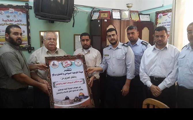 رفح/الداخلية/وائل أبو محسن: قام وفدٌ رفيع المستوي من هيئة التوجيه السياسي والمعنوي بوزارة الداخلية والأمن الوطني بمشاركة العلاقات العامة لشرطة محافظة رفح بزيارة تفقدية لمستشفى (أبو يوسف النجار) شرق المحافظة. وتقدّم الوفد كلٌّ من المقدم خليل أبو جليدان مدير هيئة التوجيه السياسي والمعنوي بوزارة الداخلية برفح والرائد شريف يونس مدير العلاقات العامة بشرطة رفح ولفيف من ضباط الهيئة والعلاقات العامة. وكان في استقبال الوفد الزائر كل من الدكتور عبد الله شحادة مدير المستشفى وطاقم من الأطباء ومدراء الأقسام. وقام الوفد الزائر بعمل جولة تفقدية على المرضى في أقسام الرجال والأطفال وتقديم الورود والهدايا الرمزية لهم في إشارة تعاطف من قبل وزارة الداخلية معهم. وفي نهاية الزيارة قدَّم الوفد الزائر (برواز) شكر وعرفان لإدارة المستشفي لجهودها الحثيثة في خدمة المواطنين.