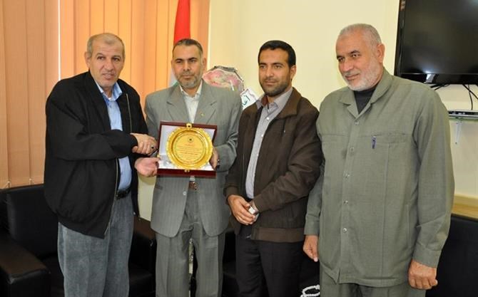 غزة / الداخلية / اعلام الامداد والتجهيز: إستقبل العميد محمود شاهين مدير عام المديرية العامة للإمداد والتجهيز بوزارة الداخلية والأمن الوطني في مكتبه اليوم العقيد بهجت أبو سلطان مدير عام هيئة التنظيم والإدارة بالوزارة. وشكر العقيد أبو سلطان الإمداد والتجهيز على حفاوة الاستقبال كما أكد ان الإمداد والتجهيز تبذل كافة الجهود بالدعم اللوجستي للإدارات والاجهزة الامنية في الداخلية. وأشاد بالدور الفعال للإمداد والتجهيز في حفظ أمن و آمان المواطن الفلسطيني و قد نجحت الوزارة نجاحاً باهراً. بدوره، رحب العميد محمود شاهين بالتعاون مع كافة الإدارات و المؤسسات لصالح الوطن و خدمته. واطلع العقيد بهجت ابو سلطان و الوفد المرافق له على عمل الإمداد و التجهيز و أثنى على الجهود الجباره التي تقوم بها الإمداد في الوزارة. ودار بين الأطراف حواراً حول مد جسور التعاون بين الإدارة و الجمعية. وفي نهاية الزيارة قدم العقيد أبوسلطان درعاً تكريميا للعميد محمود شاهين ومديريته على العطاء اللامحدود لخدمة الوطن والمواطن.