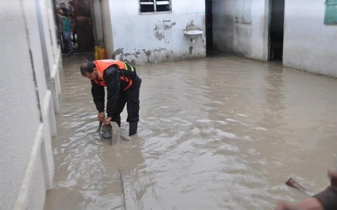 الباكر بعماليات إخلاء لبعض منازل المواطنين التي أغرقت بمياه الأمطار وتقديم