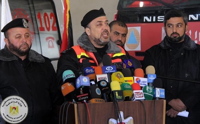 أكدت وزارة الداخلية والأمن الوطني أن طواقم الدفاع المدني وقوات الوزارة والأجهزة الأمنية تعاملت مع المنخفض الجوي الذي عصف بالأراضي الفلسطينية رغم نقص 80 % في المعدات اللازمة في عمليات الإنقاذ والإخلاء نتيجة الحصار المفروض على قطاع غزة والعدوان الصهيوني.