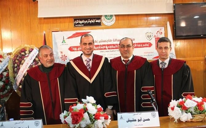 وخلال المناقشة العلنية للرسالة، قال رئيس ومشرف الدراسة الدكتور حسن أبو حشيش إن "الرسالة مهمة ومميزة وتُعبر عن جرأة الباحث واقتحامه للحصون في مجال جديد يبحث في الجانب الإداري بمجال مهم من مجالات حركة حماس".