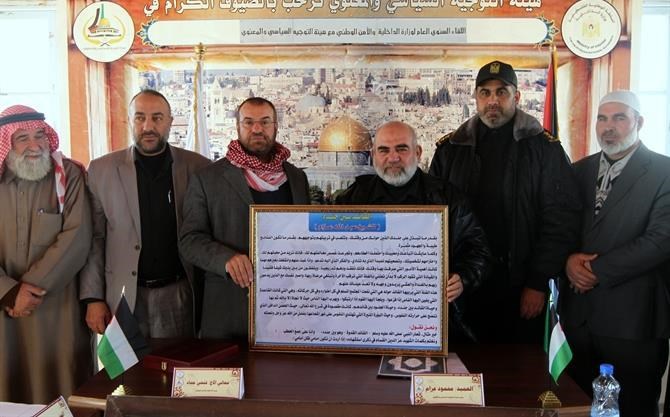 وكان في استقبال وزير الداخلية كل من رئيس الهيئة العميد محمود عزام ونائبه العقيد زكي الشريف ومدراء الإدارات والمكاتب في محافظات القطاع.