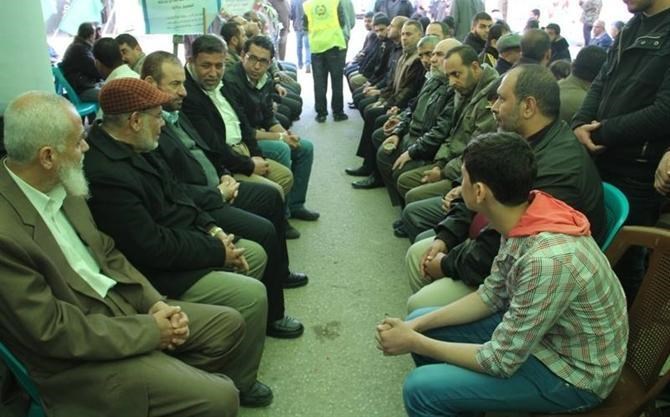 قدم وزير الداخلية والأمن الوطني أ. فتحي حماد ووفد رفيع المستوي من أركان الوزارة واجب العزاء لآل الغول باستشهاد ابنهم النقيب إبراهيم الغول"30 عام " من مرتبات الشئون العسكرية مكتب الوزير .