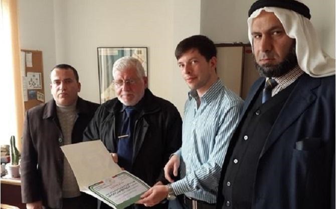 وفي نهاية اللقاء تسلم يوهانس شهادة شكر وتقدير من وحدة حقوق الإنسان للجنة الدولية للصليب الأحمر على جهودها الطيبة في فلسطين بشكل عام وفي قطاع غزة على وجه الخصوص .