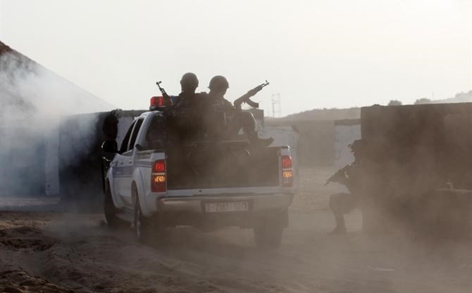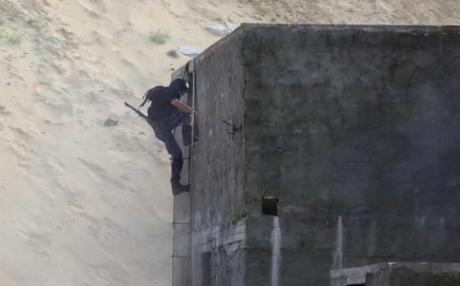 بدوره شرح العقيد وائل رجب مدير شرطة التدخل وحفظ النظام بالقطاع تفاصيل عرض المناورة العسكرية قبل بدايتها والتي تحاكي ملاحقة تجار مخدرات ومحاصرتهم والقبض عليهم.