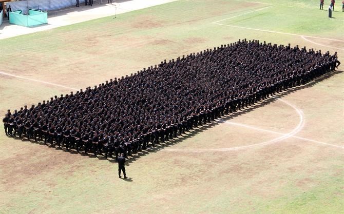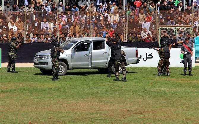 وطافت جميع أرجائه بخطوات متناسقة وحركات منتظمة دللت على قوة الأداء وعمق التدريب والتطوير الذي تلقاه الخريجون طيلة عدة أشهر من التعب وعرق الميدان. طاف خريجو فوج "درب الشهداء" ميدان العرض ورسموا بأقدامهم المنتظمة وأياديهم المتناسقة في حركتها لوحة فنية جميلة.