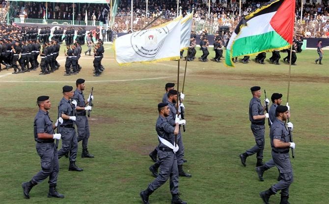 مع إعطاء إشارة بدء فعاليات التخريج تقدمت قوات العرض راجلة داخل "المستطيل الأخضر"