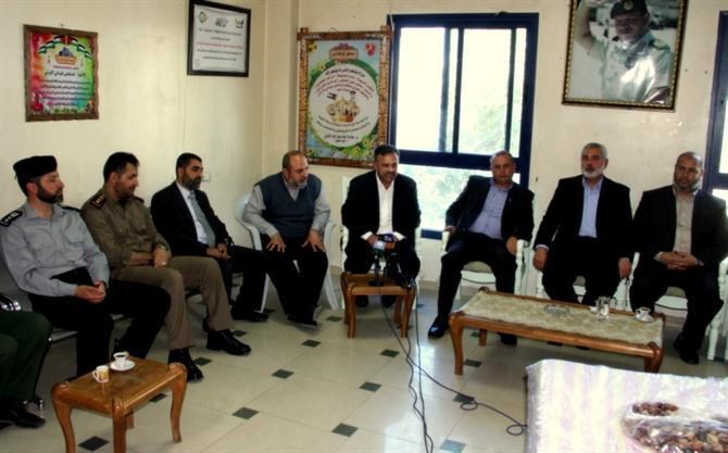 وصحب رئيس الوزراء ووزير الداخلية كل من النائب بالمجلس التشريعي د. خليل الحية والقيادي بحركة حماس د. سامي أبو زهري ومدير عام قوى الأمن الداخلي اللواء صلاح الدين أبو شرخ وعدد من قادة وأركان الوزارة.
