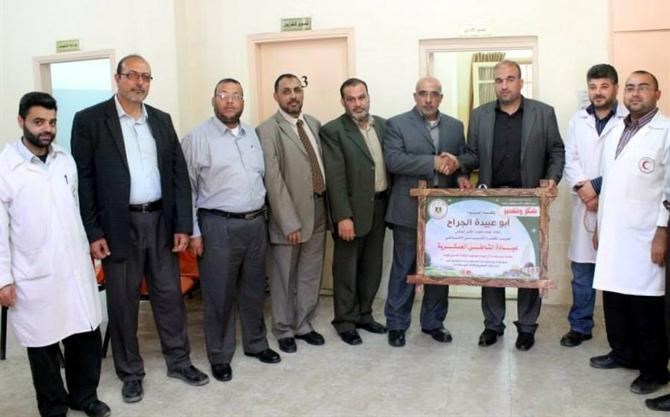 وضم الوفد كل من قائد قوات الأمن الوطني اللواء أبو عبيدة الجراح ونائبه العقيد طارق أبو هاشم ومدير الشئون الإدارية والمالية العقيد إياد عقل، حيث كان في استقبالهم مدير عيادة الشاطئ العسكرية الرائد طبيب حامد الشرافي ومدراء الإدارات ورؤساء الأقسام في العيادة.