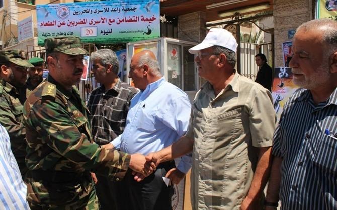 شارك وفد من الإدارة العامة العمليات المركزية التابع لوزارة الداخلية ووفد من قوات الأمن الوطني في وقفة تضامنية مع الأسرى الإداريين المضربين عن الطعام منذ 21 يوماً وذلك أمام مقر الجنة الدولية للصليب الأحمر وسط مدينة غزة.
