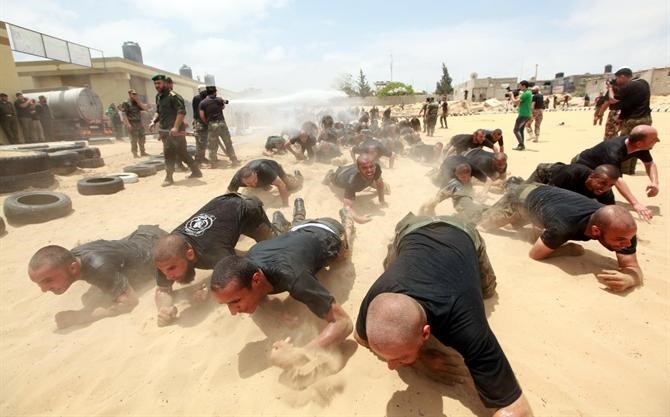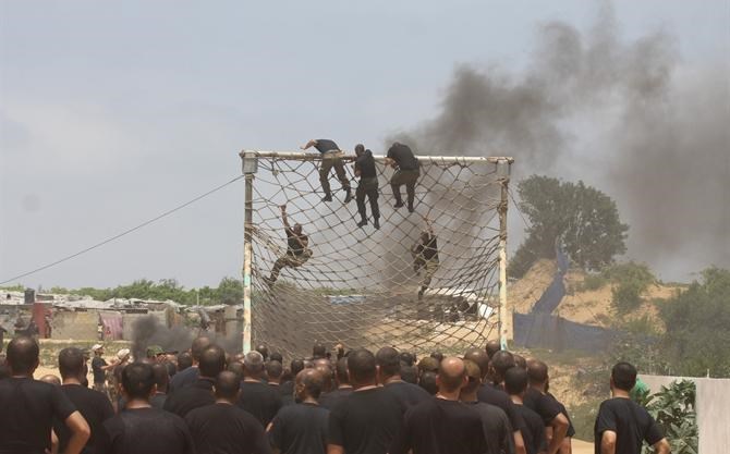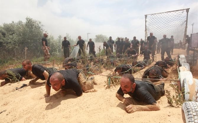 أجرت قوات الأمن الوطني التابعة لوزارة الداخلية، اليوم الأربعاء 28/5/2014، مناورة عسكرية تُحاكي معركة حقيقة خلال تدريبات دروة الضباط الثامنة في مركز تدريب الأمن الوطني شرق مدينة غزة.