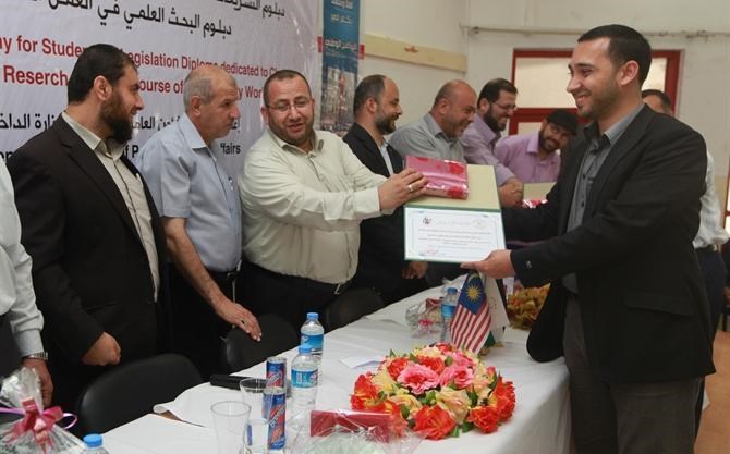 وحضر حفل التخريج - الذي عقد في مقر الهلال الأحمر وسط مدينة غزة - كلٌ من وزير الداخلية فتحي حماد ومدير عام الإدارة العامة للشئون العامة والسياسي أ. ثروت البيك ومدير مؤسسة "أمان" ماليزيا بغزة أ. عمر صيام.