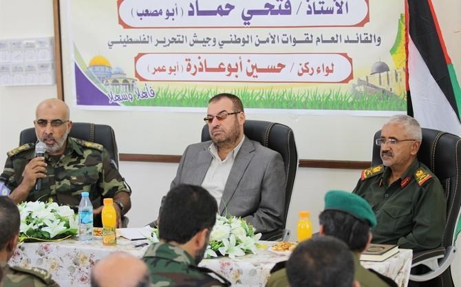 بدوره شكر قائد قوات الأمن الوطني اللواء ركن حسن أبو عاذرة وزير الداخلية أ.فتحي حماد على ما قدمه من جهودٍ كبيرة في خدمة أبناء الشعب الفلسطيني.