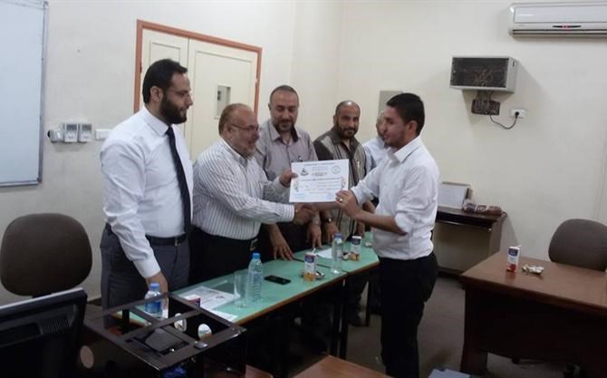 وحضر حفل الاختتام الذي عقد بإحدى قاعات الجامعة الإسلامية كلا من العقيد زكي الشريف نائب رئيس هيئة التوجيه السياسي والمعنوي و د. نسيم ياسين رئيس مركز القرآن الكريم والدعوة بالجامعة الإسلامية وبمشاركة أ . عزات السويركي مدير إدارة التوجيه والإرشاد والأستاذ هاني عوض من مركز القرآن .