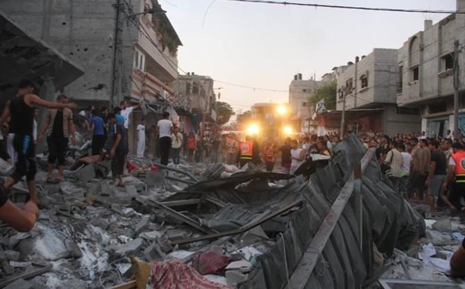 وأغارت الطائرات الصهيونية منذ صباح اليوم على العديد من منازل المواطنين في أنحاء متفرقة من قطاع غزة , كان أبرزها استهداف منزل يعود لعائلة غنـام في مخيم يبنا بمدينة رفح مما أدى لارتقاء خمسة شهداء من العائلة , فيما تواصل طواقم الاسعافات والدفاع المدني بحثها عن المفقودين تحت الأنقاض.