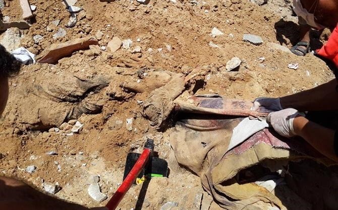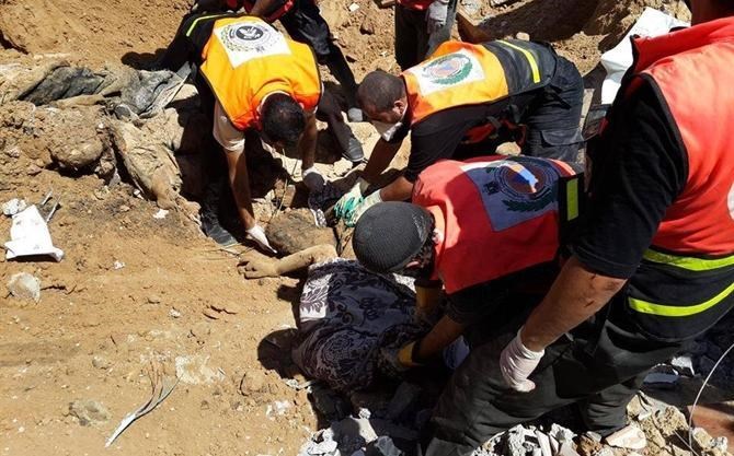 عشرات الجثث تم انتشالها من بين أنقاض المنازل المدمرة، بعضها متحلل والبعض الآخر عبارة عن أشلاء، وعدد منهم لم تُعرف هويته تم إلحاقهم بآخرين في ثلاجات الموتى التي لم تعد تطيق العدد الهائل من الشهداء.