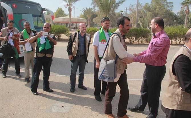 بدوره قال رئيس الوفد الجزائري بالقافلة أحمد الإبراهيمي إنهم رغم القصف والدمار والحصار سيستمرون بدعم صمود شعب غزة و"سيبقي شعار عام "2014" رفع الحصار عن القطاع".