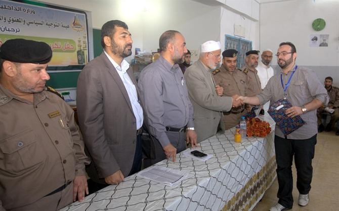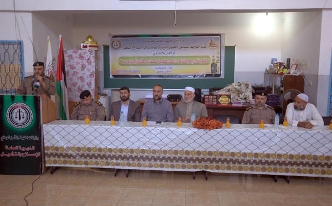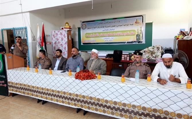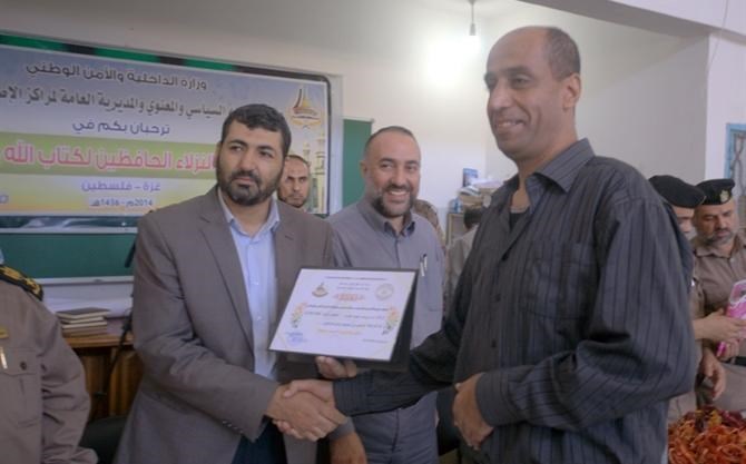 وحضر حفل التكريم - الذي عقد في مركز إصلاح وتأهيل الكتيبة - كلٌّ من النائب في المجلس التشريعي د. يونس الأسطل والعقيد زكي الشريف نائب مدير هيئة التوجيه السياسي والمقدم علاء سرور مدير مركز إصلاح وتأهيل غزة.