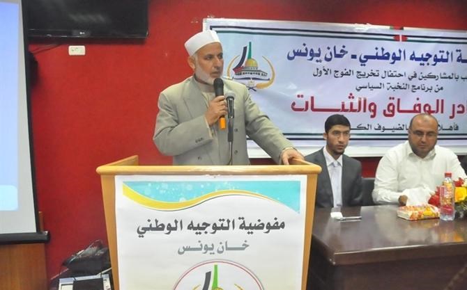 خرّجت مفوضية التوجيه الوطني بوزارة الداخلية بمحافظة خانيونس جنوب قطاع غزة عشرات الضباط في الوزارة ضمن برنامج النخبة السياسي "كادر الوفاق والثبات"، في قاعة مركز تدريب تعليم خانيونس.