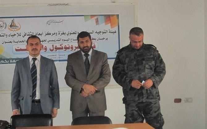 نظمت هيئة التوجيه السياسي والمعنوي في محافظة غزة يوماً تدريبياً متكاملاً في "فن الاتيكيت والبروتوكول" لمرافقي الشخصيات الهامة والاعتبارية والعلاقات العامة والبرتوكول في جهاز الأمن الحماية وجاء هذا اليوم التدريبي بالتعاون مع مركز أبعاد الثقافي لإحياء والتجديد.