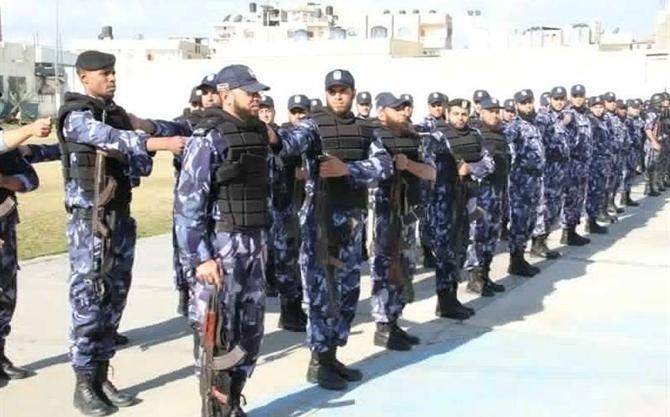 نظمت قوات التدخل وحفظ النظام في الشرطة الفلسطينية بمحافظة رفح طابور أركان ومسيراً عسكرياً صباح اليوم الاثنين انطلاقاً من مقر القوة وسط رفح .
