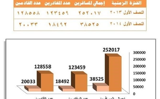 وبإجراء مقارنة بسيطة بين أعداد المسافرين خلال النصف الأول من عام 2014 ونظيره من عام 2013، الذي شهد تحسناً بعمل المعبر نجد أن عدد المسافرين خلال النصف الأول من عام 2014 الذي بلغ 38525 مسافراً في كلا الاتجاهين لا يتعدى سُدس عدد المسافرين بالنصف الأول من عام 2013 الذي بلغ 252017 مسافراً في كلا الاتجاهين.