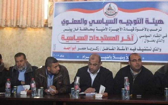 نظمت هيئة التوجيه السياسي والمعنوي بمحافظة خانيونس جنوب قطاع غزة لقاءً سياسياً جمع قيادات الأجهزة الأمنية ومدراء الإدارات الشرطية بالمحافظة.