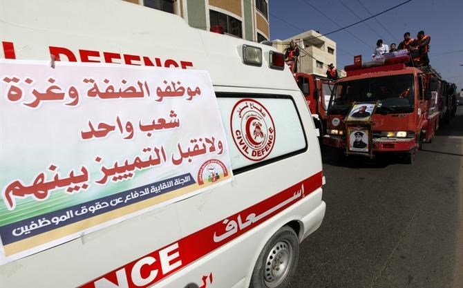 وأكد الناطق باسم الخدمات الطبية محمد جبر خلال مؤتمر صحفي أمام مجلس الوزراء بغزة, عقب مسير متحرك للخدمات الطبية والدفاع المدني انطلق من أمام ملعب اليرموك , صباح الثلاثاء , على أن حقوق الموظفين لا يُمكن العبث بها من الناحية القانونية والأخلاقية.