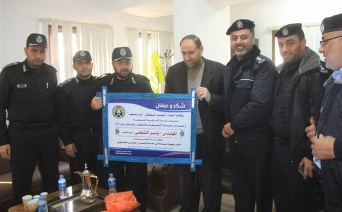 وضم الوفد مدير عام الشرطة اللواء تيسير البطش ومساعده محمد أبو زايد والعميد فائق المبحوح والعميد عبد المعطي هنية والعقيد ايهاب مهنا ولفيف من المدراء والضباط .