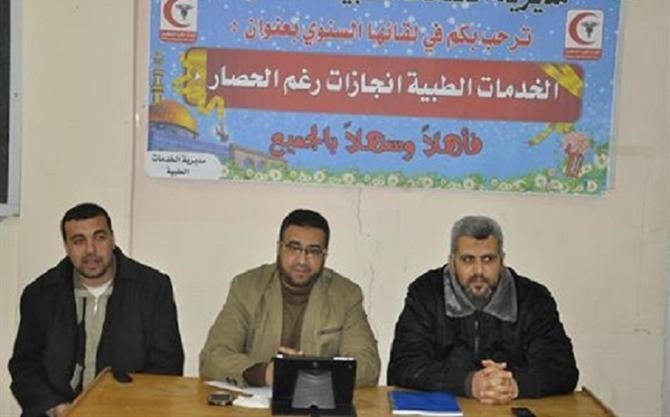 عقدت مديرية الخدمات الطبية أمس الخميس لقاءها السنوي بعنوان "الخدمات الطبية إنجازات رغم الحصار" وذلك في قاعة معهد الإسعاف بمقر المديرية بمدينة غزة .