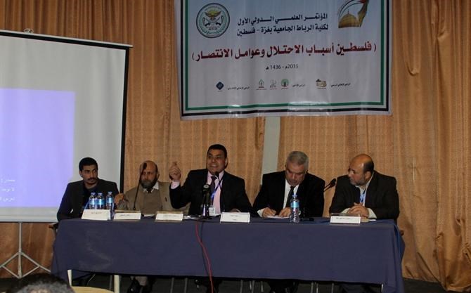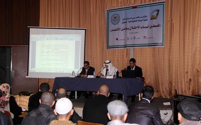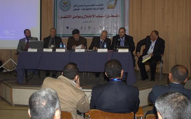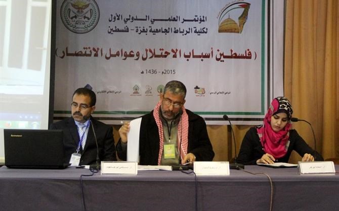 في حين تمحورت الجلسة الأولى "ب" حول " احتلال فلسطين والقدس عبر العصور " برئاسة د. زكريا السنوار أستاذ التاريخ المشارك في الجامعة الإسلامية وبحضور جمع من الباحثين والطلاب.