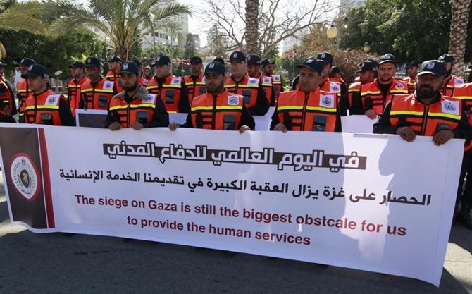 وقال الدفاع المدني في رسالته : " يأتي اليوم العالمي للدفاع المدني وفي جميع أنحاء العالم، يتعالى النداء من أجل تأمين حياة كريمة للجميع، والمساواة في الحقوق واحترام حياة الناس , وفي المقابل يستمر الاحتلال الإسرائيلي في حصاره الظالم على قطاع غزة، ضاربا بعرض الحائط تلبية أدنى متطلبات الحماية المدنية للمواطنين العزل ".